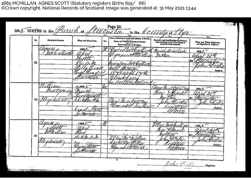 Spouse: Archibald MCGREGOR, 1905, age 20