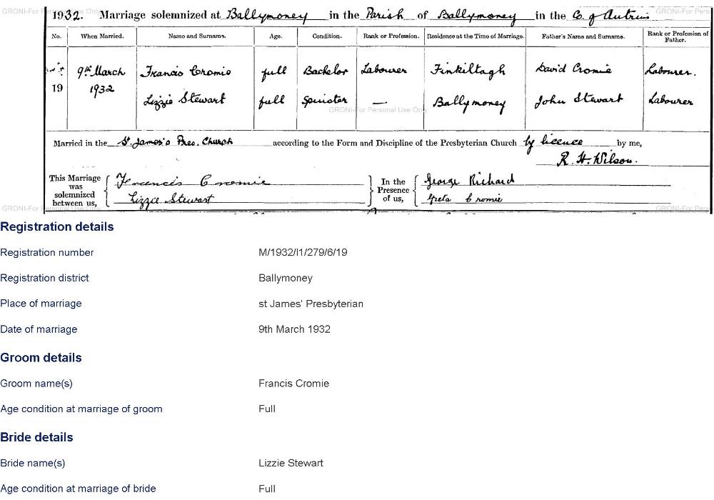 Husband: Francis CROMIE