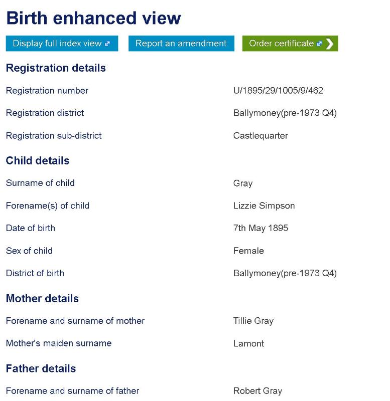 Lizzie GRAY (1895- )