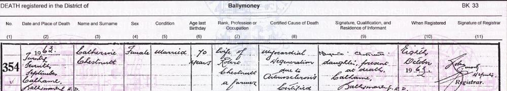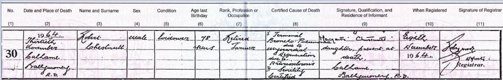 Cause: Terminal Broncho Pneumonia due to Myeocardial Degeneration due to Atherosclerosis